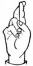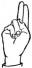 На ћирилици написано МАХАИЛО КОСНИЋ састоји се из 13 слова [?]. Исписано ћириличном једноручном азбуком за глувонеме: